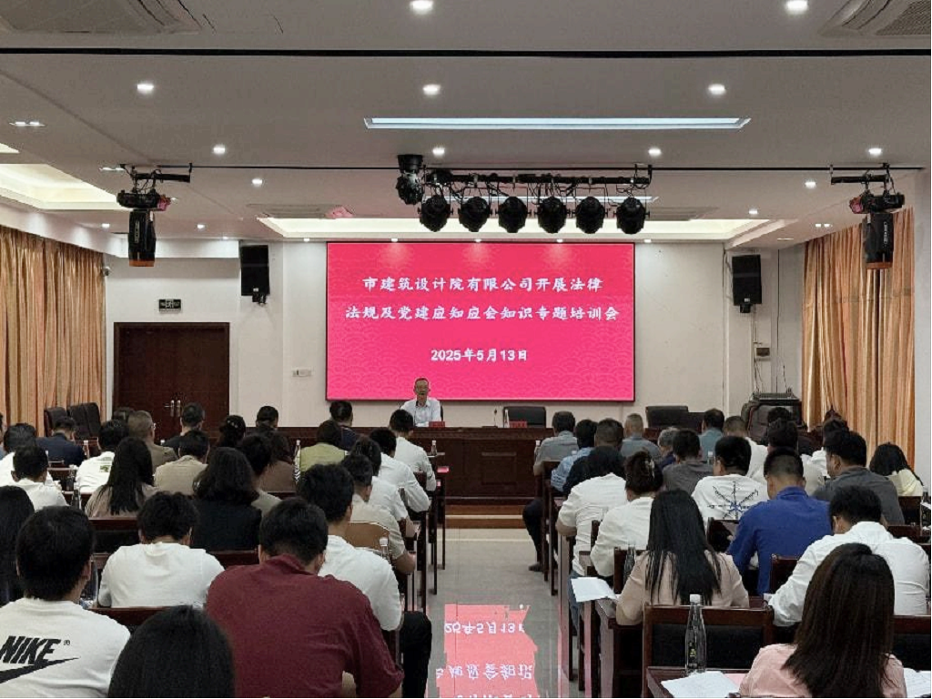 5月13日下午,市建筑设计院有限公司以提升全员法治素养与专业能力为目标,组织开展法律法规及应知应会知识专题培训。培训会由党委书记、董事长于江主持,院公司中层副职及以上领导干部,全体党员、入党积极分子,关键岗位人员及新入职员工共计70余人参加。