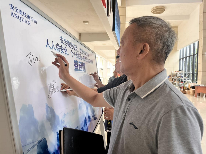 全员承诺践诺:设立“我是安全第一责任人”承诺墙,党委书记、董事长于江与职工们共同郑重签下姓名,承诺从“要我安全”向“我要安全”转变。