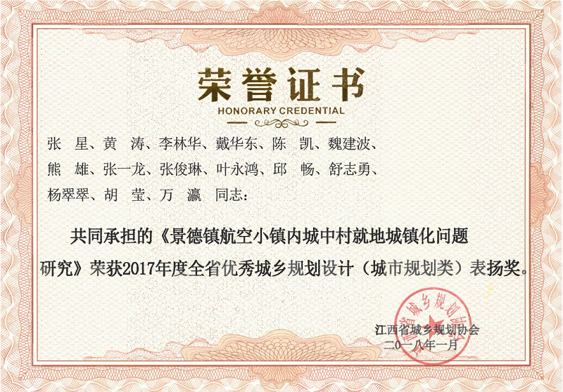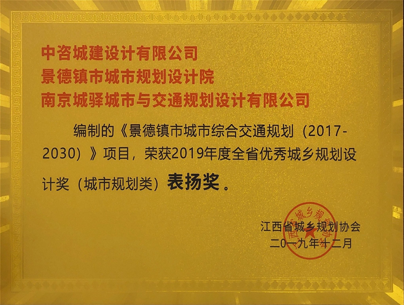 2019景德镇市城市综合交通规划全省优秀城乡规划设计奖