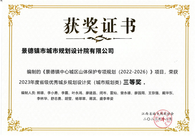 2023景德镇中心城区山体保护专项规划项目获2023年度省