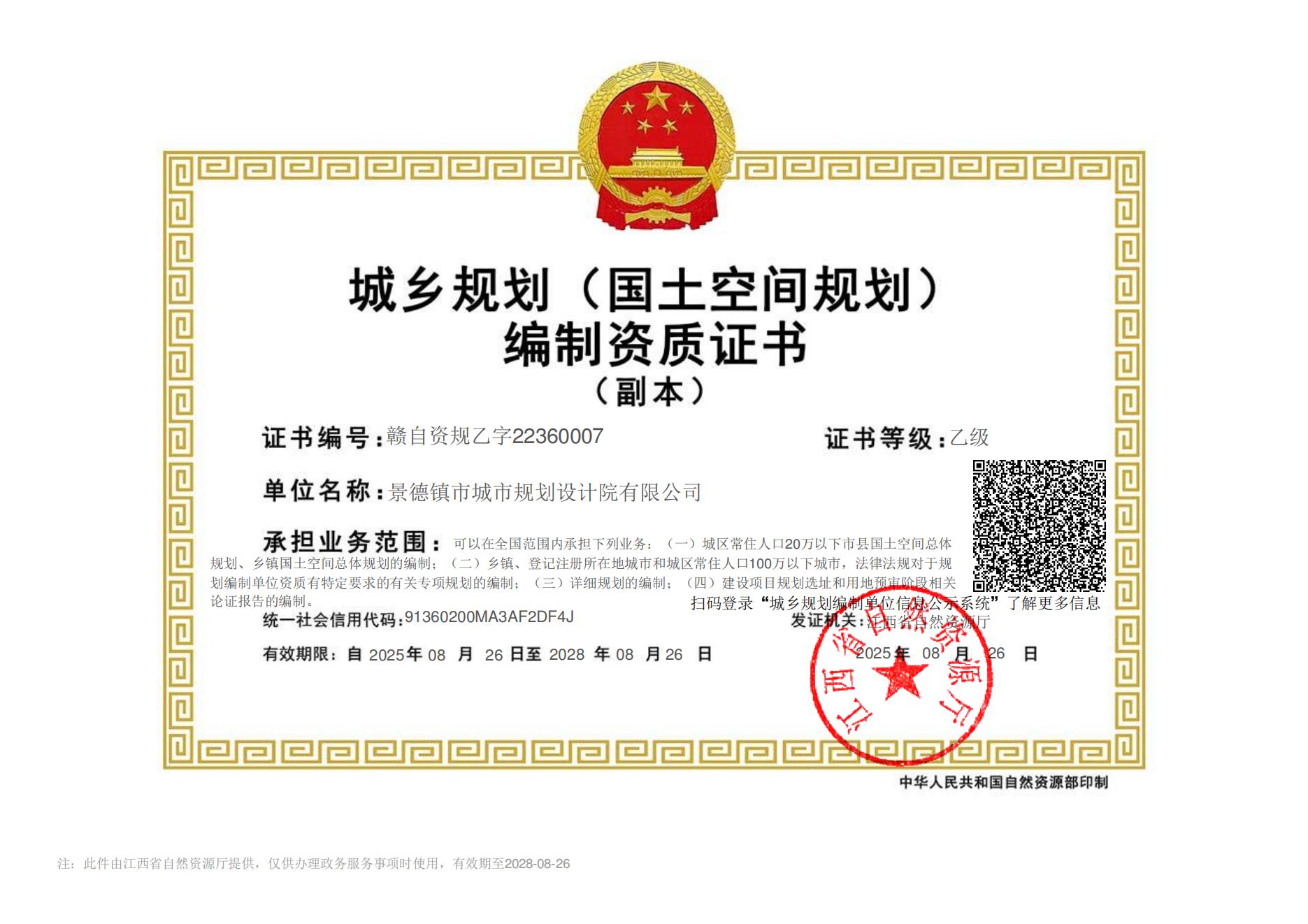 规划院公司城乡规划乙级资质